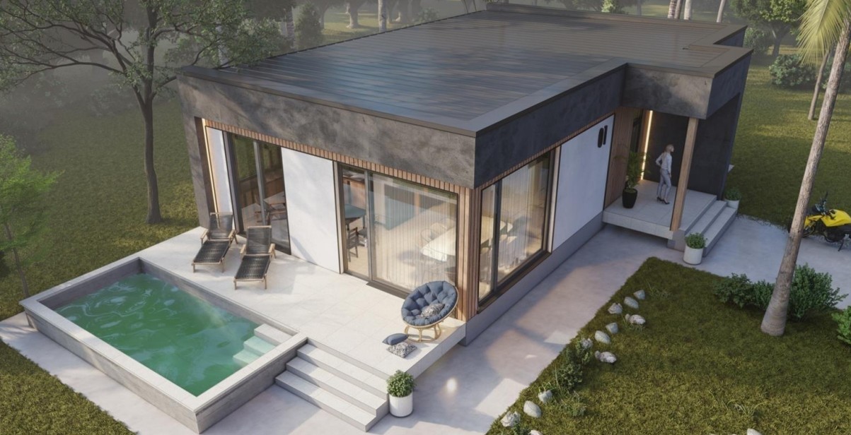 Буквально в километре от моря находится коттеджный поселок Dolcevita из 8 вилл площадью 150 кв м с бассейном